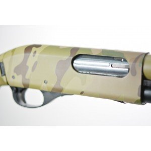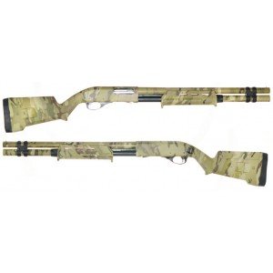 With the idea of hunting and outdoor use, APS made an shotgun that is covered by camouflage. Licensed Multi-Cam camouflage pattern is being used on this model, this shotgun features in:
